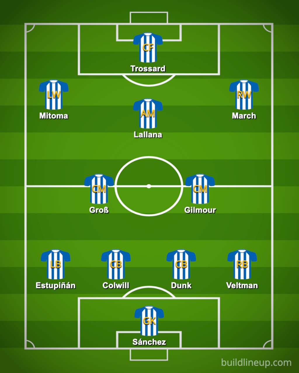 - Adam Webster, Danny Welbeck, and Jakub Moder (out injured)