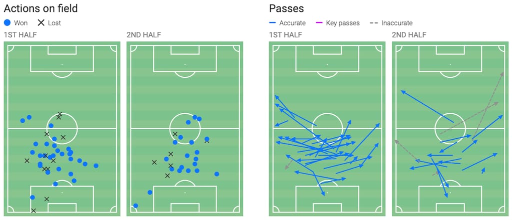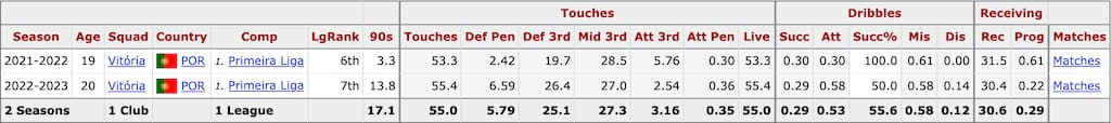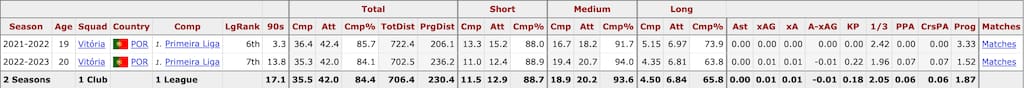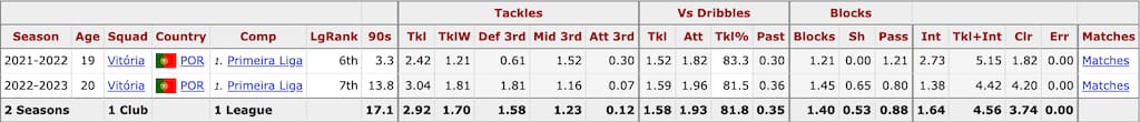 Given the unpolished nature of his talent profile, Bamba’s age offers plenty of scope to fine-tune his contributions away from the defensive side of the ball, but what is most impressive already is his capability in defensive actions (as seen above in his overall data profile). This comes as both a holding midfielder and at center-back with a recent performance in a 3-2 away loss against Gil Vicente showcasing not only this side of his game but also solid distribution.