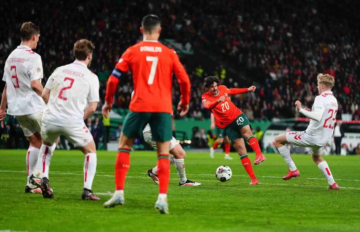 Francisco Trincao spared Cristiano Ronaldo’s blushes as Portugal set up a Nations League semi-final with Germany thanks to a thrilling 5-2 win over Denmark.