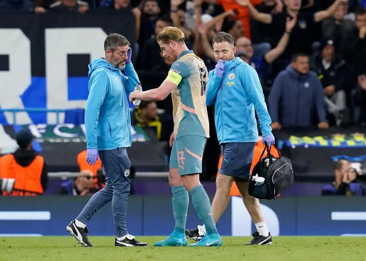 The Belgium midfielder was taken off at half-time of last night’s 0-0 draw with Inter Milan at the Etihad and his availability for the weekend will depend on tests carried out this morning.