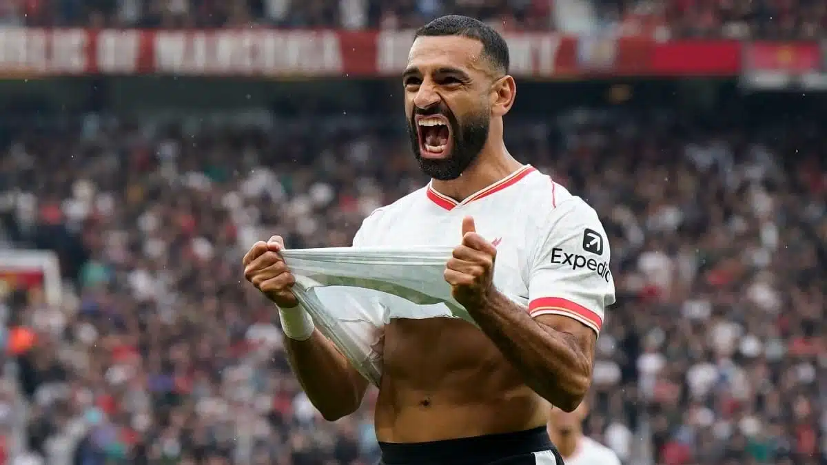 Liverpool won the ball from Kobbie Mainoo in midfield, and Dominik Szoboaszlai put it on a plate for Salah to finish.