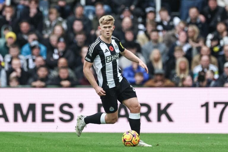 Eddie Howe praised Lewis Hall’s progress this season after the full-back was called up by England yesterday.