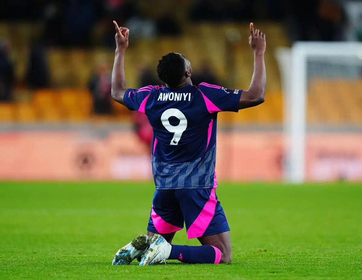 Awoniyi sustained a broken nose in a challenge with Exeter goalkeeper Joe Whitworth on Tuesday night and was treated for over 10 minutes on the field at St James’ Park before departing on a stretcher.