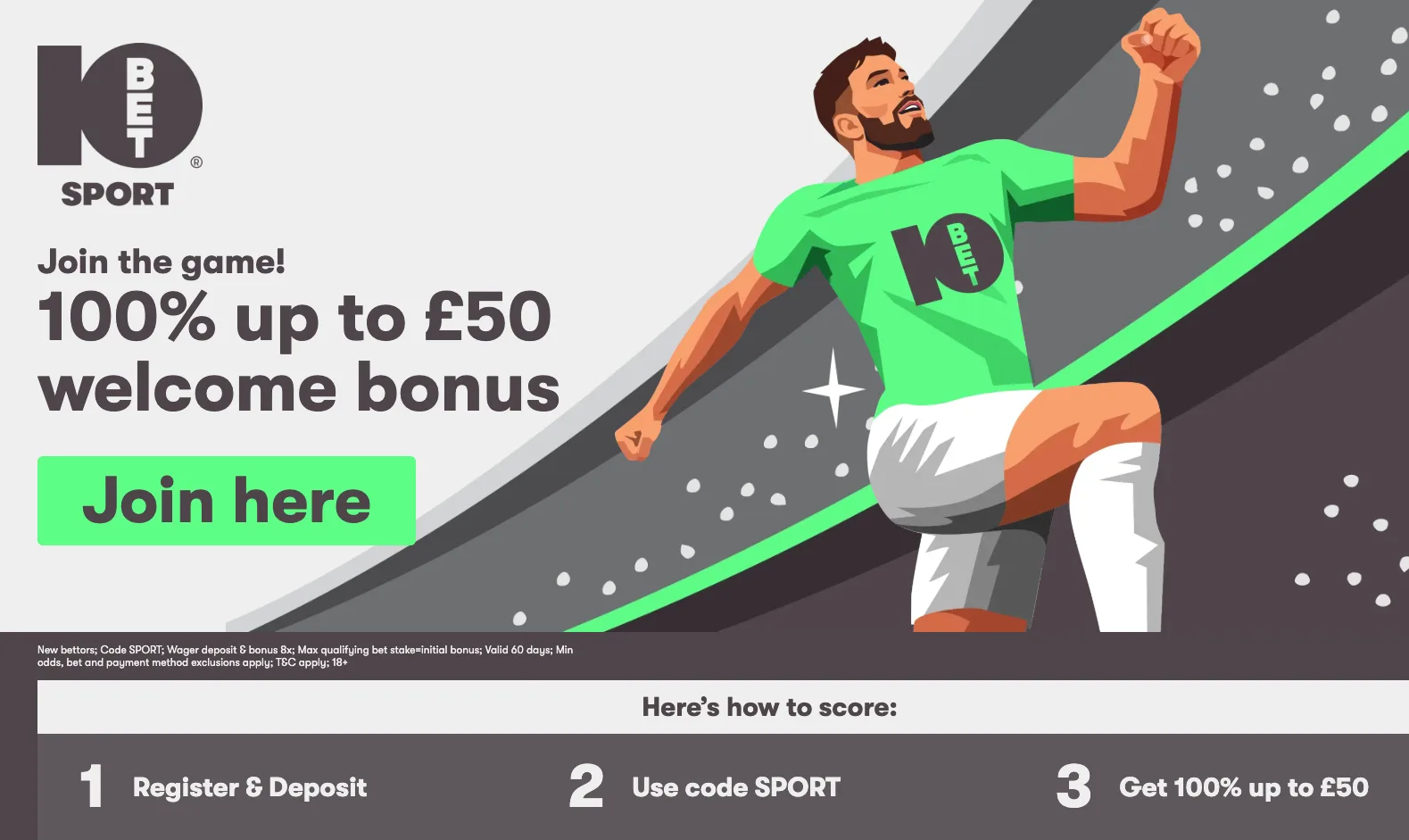 Ahead of tonight’s Europa League action, one of the top betting sites in the UK, 10Bet, is offering all new customers signing up for the first time the chance to claim a welcome offer consisting of a 100% matched deposit up to £50!