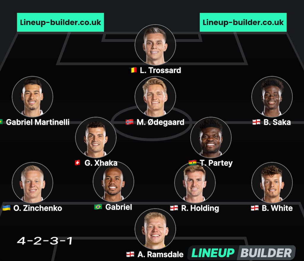 - Out: William Saliba, Takehiro Tomiyasu, Mohamed Elneny