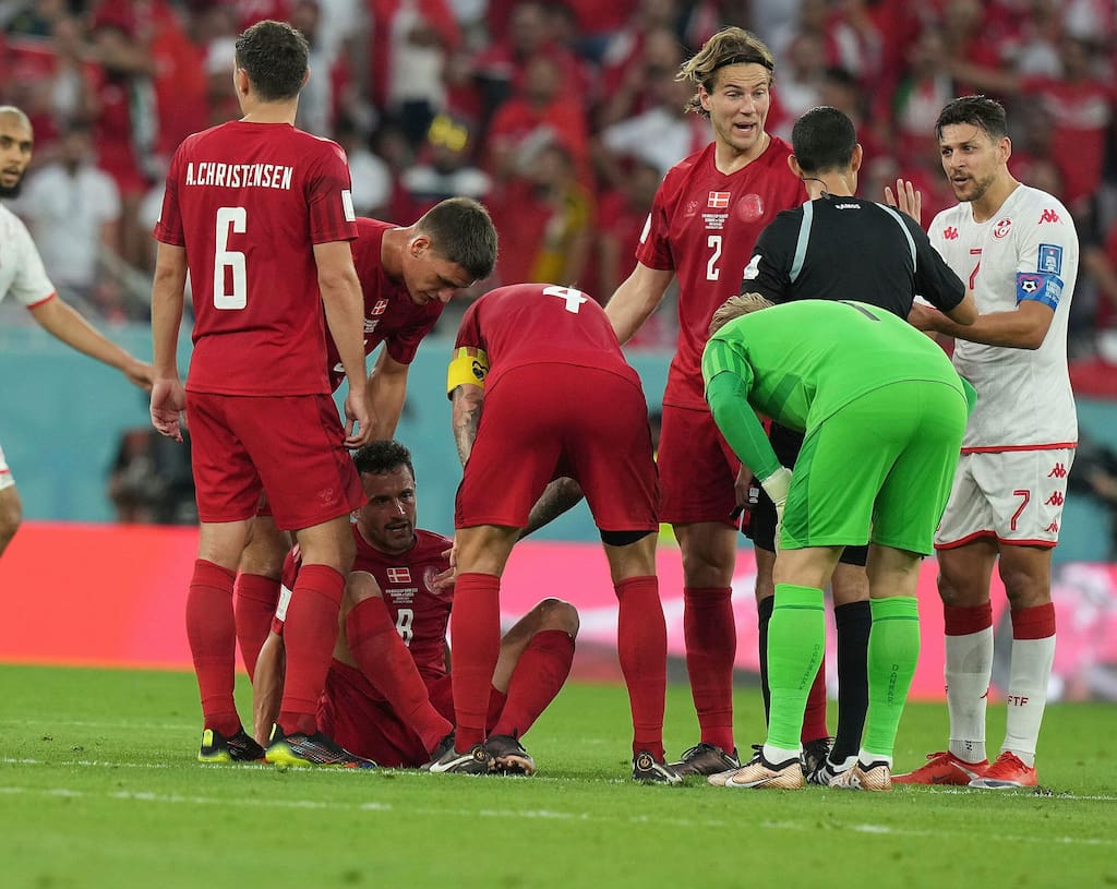 The 31-year-old midfield anchor went down in the dying moments of the first half in Denmark’s group D opener against Tunisia, which his side drew 0-0, and had to be replaced by Brentford attacker Mikkel Damsgaard in first-half stoppage time.