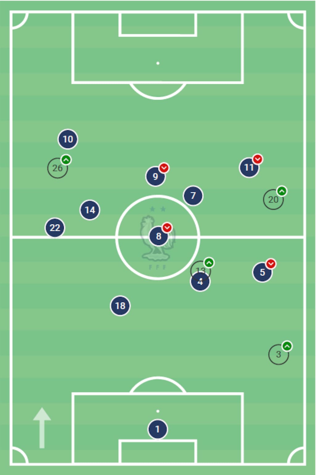 In turn, he is able to thread a ball through to Olivier Giroud, who provides the finishing touch to put France 1-0 up. Were England to revert to a back three, as has been suggested (and as Poland set up in during their game against Les Blues). it would hand Mbappe even greater licence to drift inside, with Hernandez able to pin back his opposing wing-back. 4-3-3 seems the best option for success.