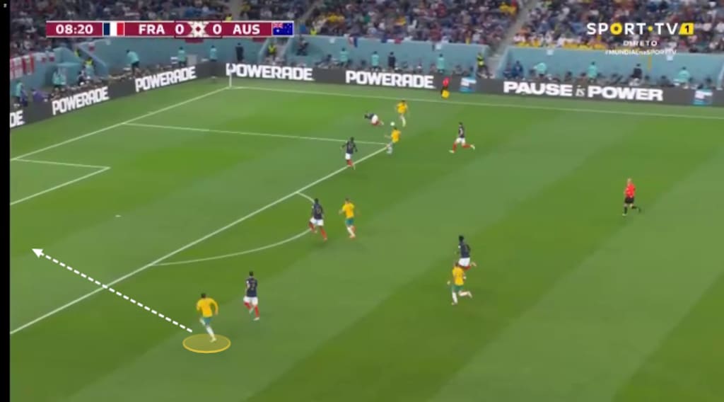 While Wales are far inferior opposition to what England will face on Saturday, it is something that Didier Deschamps’ side struggle with too. Australia’s shock lead in their group opener came from an almost identical passage of play. Having got the better of Lucas Hernandez in the full-back position, Matthew Leckie fired the ball across the box for the onrushing Craig Goodwin to turn home with the French defence scrambling.