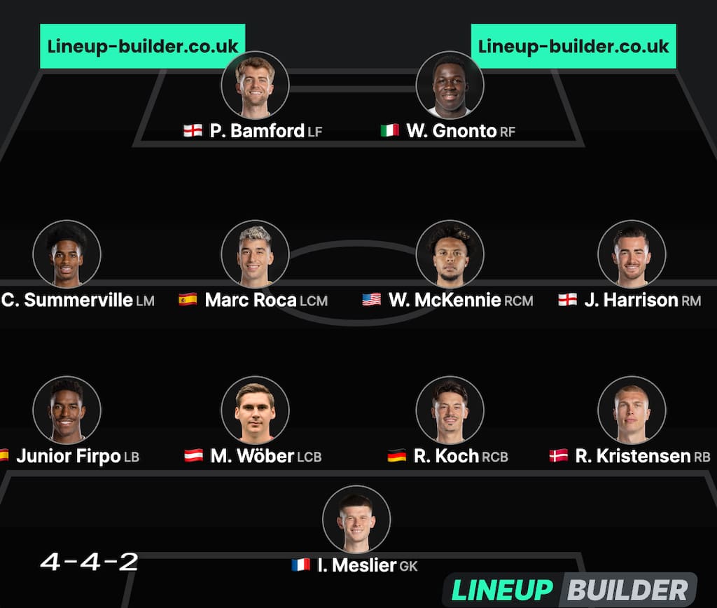 - Out: Tyler Adams, Luis Sinisterra, Stuart Dallas