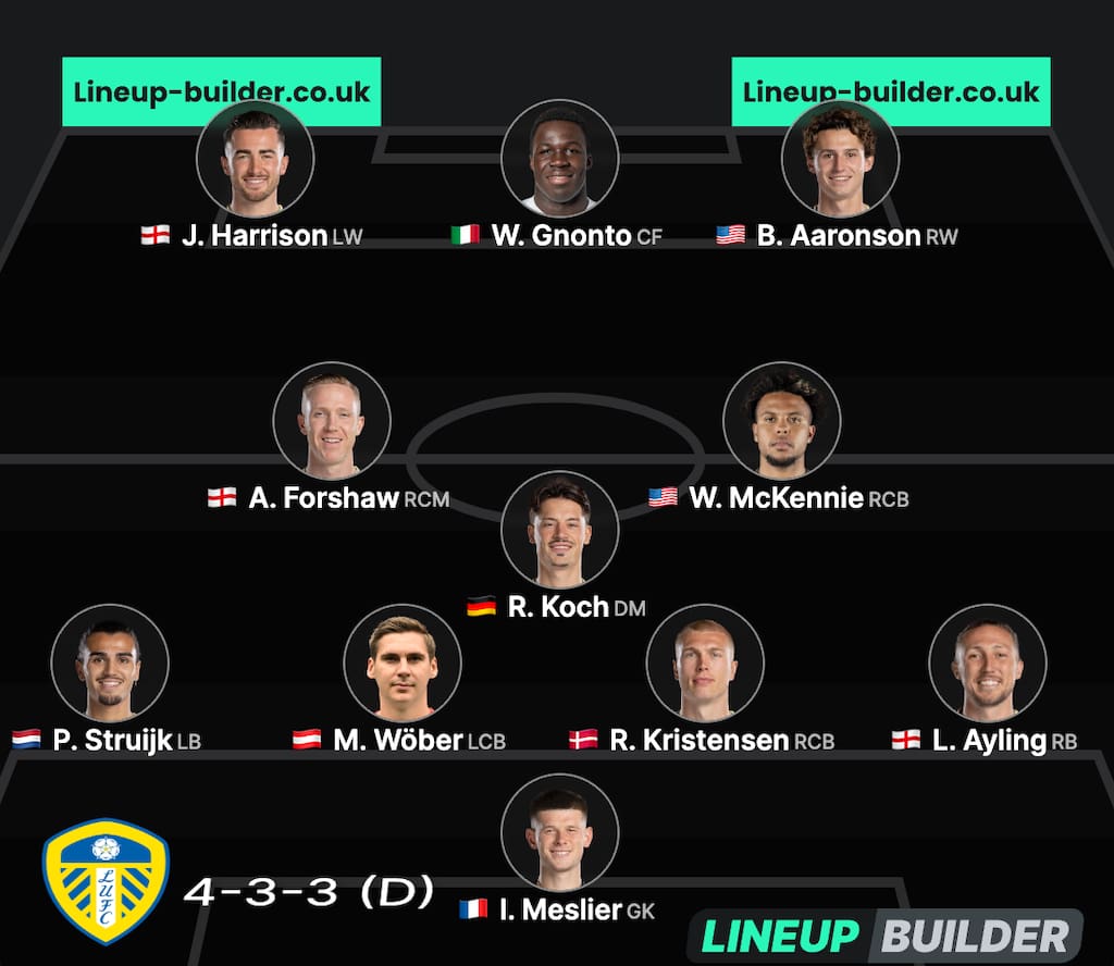 For that task, the Yorkshire outfit remains without key midfielder Tyler Adams, while Stuart Dallas and Luis Sinisterra are both out of action as well. Questions surround strikers Patrick Bamford and Rodrigo, and should neither be fit, it could be Italian starlet Wilfried Gnonto to lead the line.
