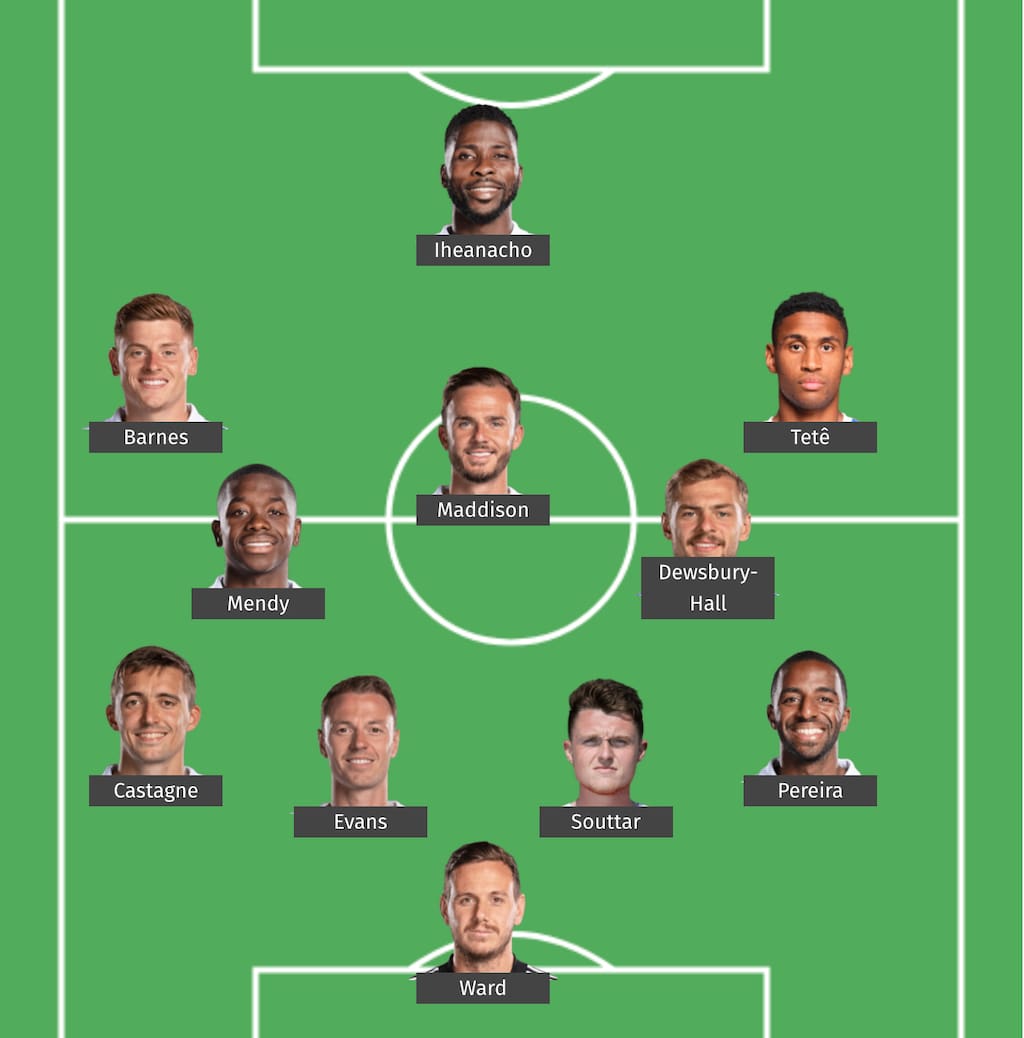 - Out: Youri Tielemans, James Justin, Victor Kristiansen, Wout Faes (Red card)
