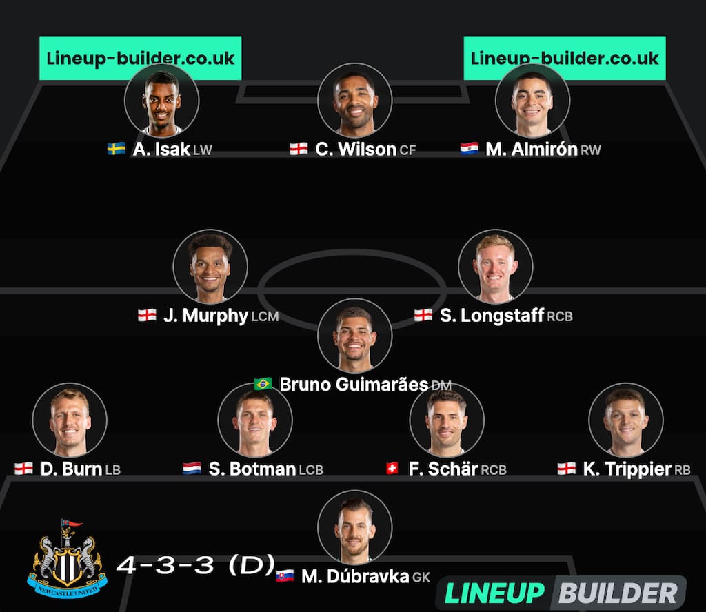 Howe will be without Nick Pope, Joelinton, and Joe Willock as blows to the matchday team, while residual absences through Emil Krafth, Matt Ritchie, Ryan Fraser, and Jamaal Lascelles also are guaranteed. There should be few, if any, shocks to the expected XI.
