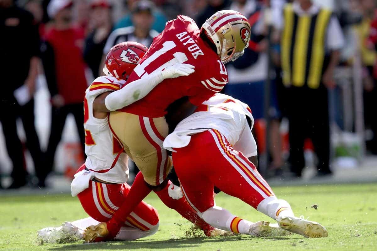 Aiyuk, who signed a four-year, $120million contract extension in August, was hit late in the second quarter by two Chiefs defenders and exited for the locker room.